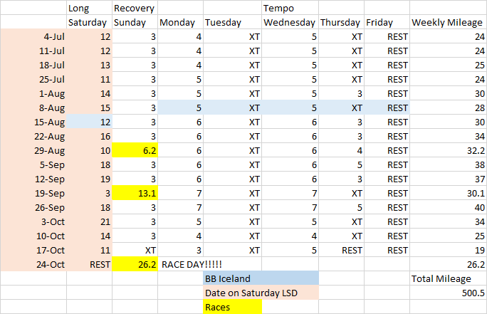 After some conversations with BB about the marathon training schedule, we’ve revised it to this: